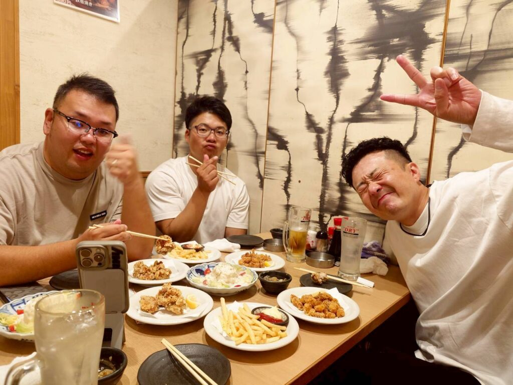 夜は銀座へ移動し、新橋の居酒屋でチームの絆を深める時間を過ごしました。昼間の刺激的な体験を振り返りながら、熱い議論が続きました。